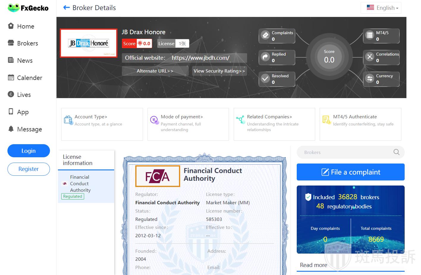FTI has not received any complaints about JB Drax Honore forex broker at the moment.