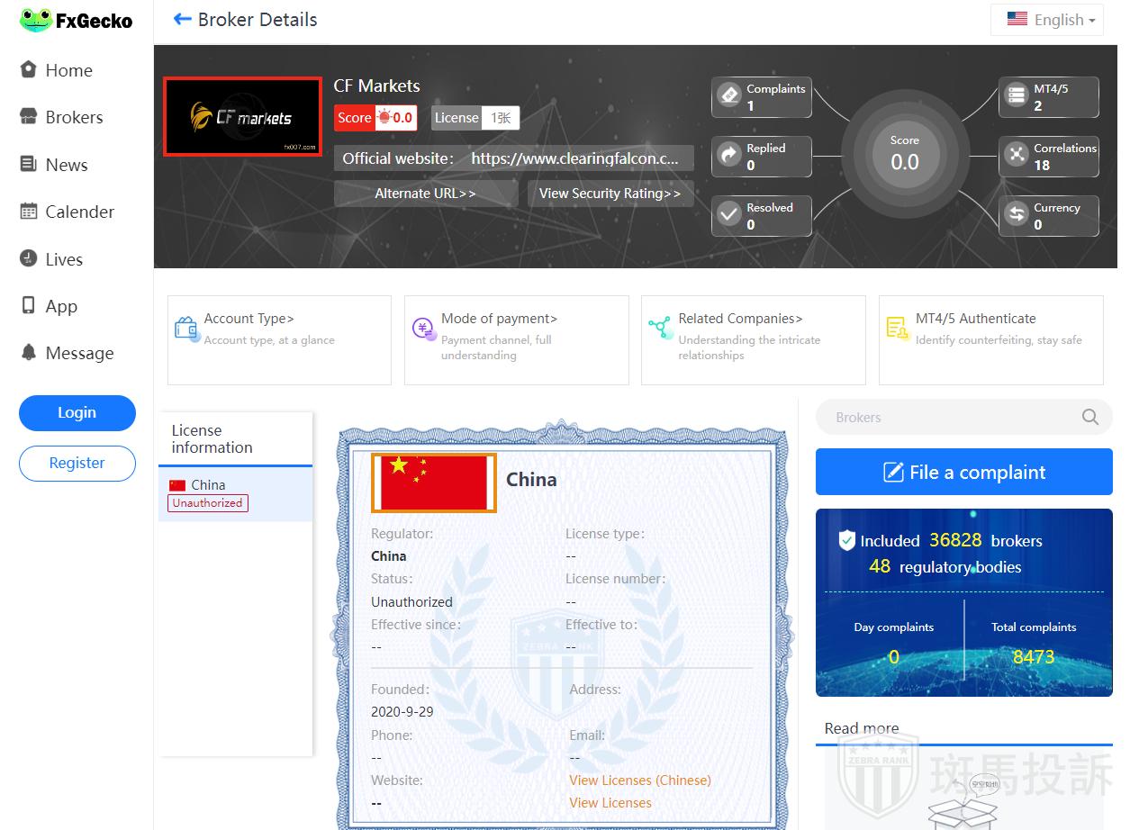 Currently, no valid regulatory information has been found for CF Markets, which is a high risk sign, beware!