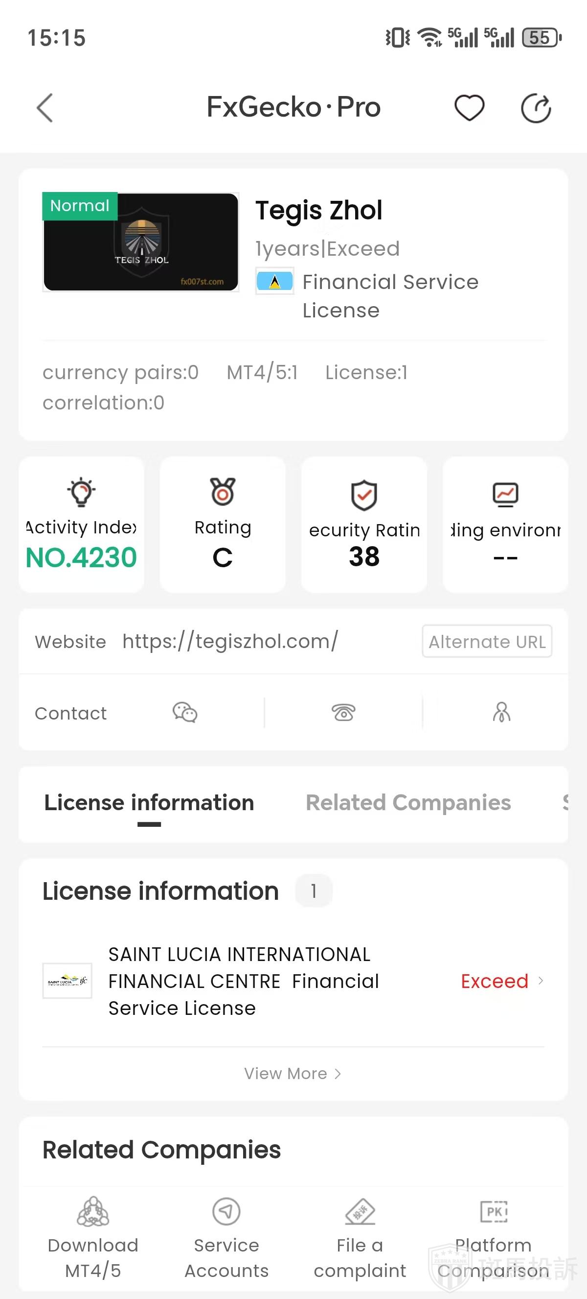 Currently, we searched forex broker Tegis Zhol has 1 financial regulators registration information, investors need to pay attention to whether the broker is validly regulated.