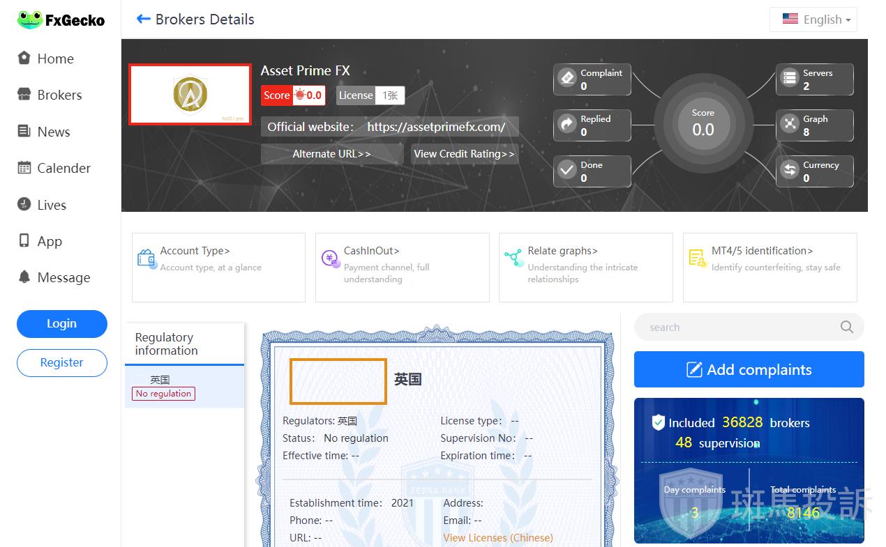 This broker is called Asset Prime FX, which has been established for one year and ranks 3769 in the world. At present, there are 0 foreign exchange license, and the risk scan shows 1 risk. Investors need to pay attention to relevant risks.