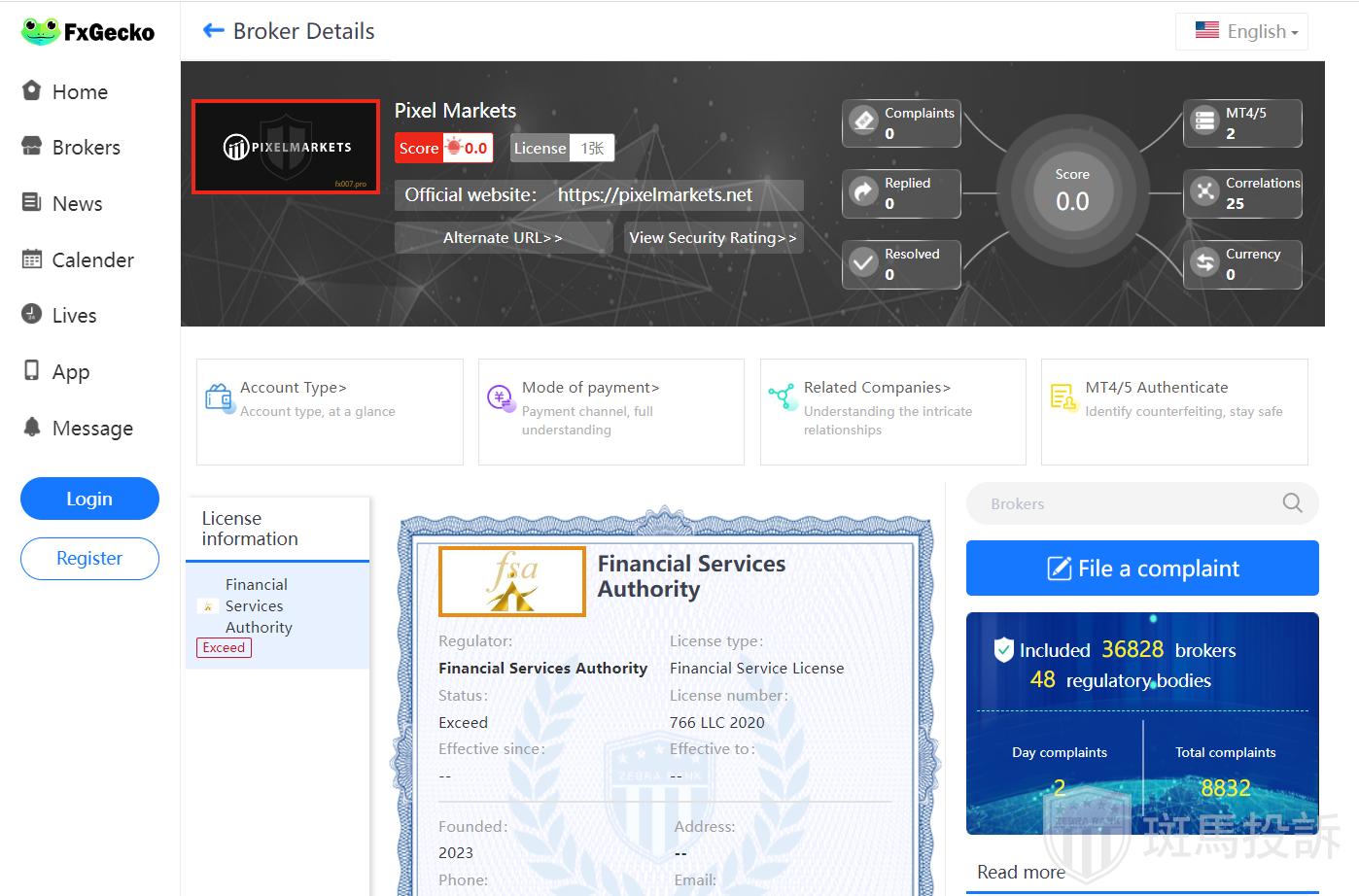 FTI has not received any complaints about Pixel Markets forex broker at the moment.