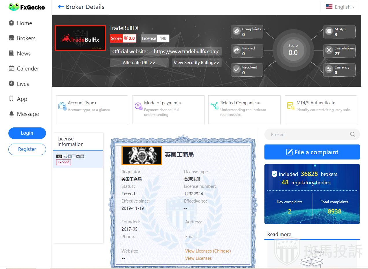 The TradeBullFX platform is registered with the UK Trade and Industry Authority under registration number 12322924 and falls under the category of over-regulated business.
