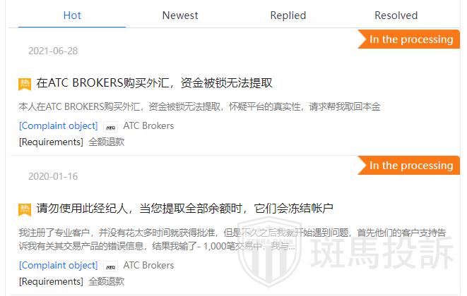 5. Reviews & Feedback: According to various review sources, some users have reported that their funds at ATC Brokers have been locked out and unable to be withdrawn, and there have even been instances where accounts have been closed. Some users say that the company responds quickly and the withdrawal process is smooth, but charges fees for inactive accounts.