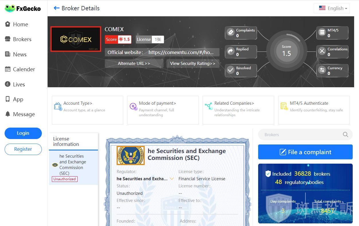 This broker is called COMEX, which has been established for one year and no ranks in the world. At present, there are 0 foreign exchange licenses, and the risk scan shows 1 risks. Investors need to pay attention to relevant risks.