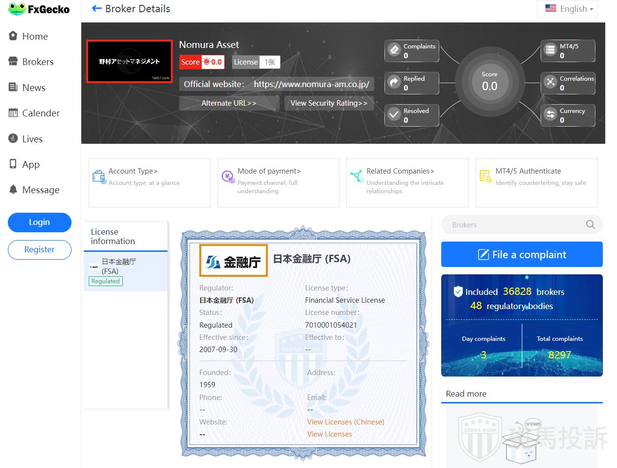 This broker is called Nomura Asset, which has been established for one year and ranks 0 in the world. At present, there are 1 foreign exchange licenses, and the risk scan shows 69 risks. Investors need to pay attention to relevant risks.