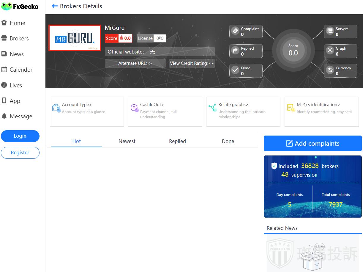 The main white label relationship shows that there are 0 associated brokers on the MrGuru. We need to pay attention to whether the associated brokers are running away. This is the business risk of the brokers and the past business history, which can be used as an important reference condition for selecting brokers. The broker relationship data comes from the data of MetaQuotes.