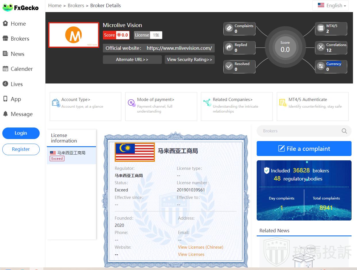 FTI risk warning shows that Microlive Vision has 4 risks. Investors need to pay attention to the relevant risk alerts for this broker.