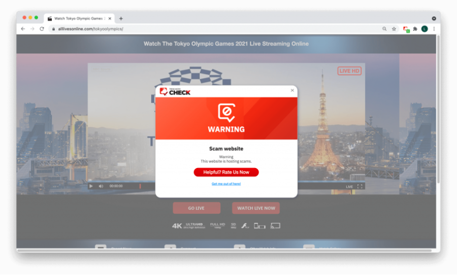 Are you looking to watch live streams of the exciting Olympic games? Be smart when choosing legitimate online streaming services! We have detected many dangerous websites that claim to offer free sports game streaming. Here are some examples: