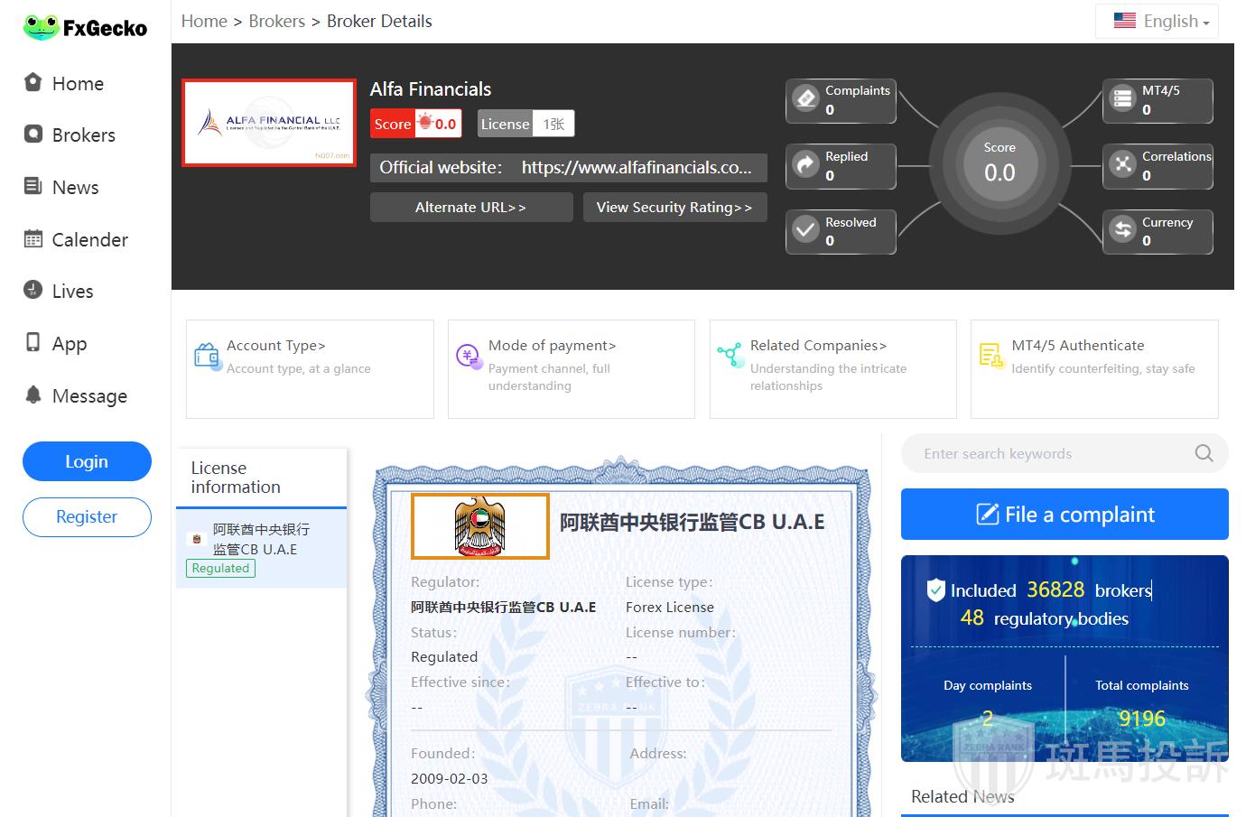 FTI risk warning shows that Alfa Financials has 12 risks. Investors need to pay attention to the relevant risk alerts for this broker.