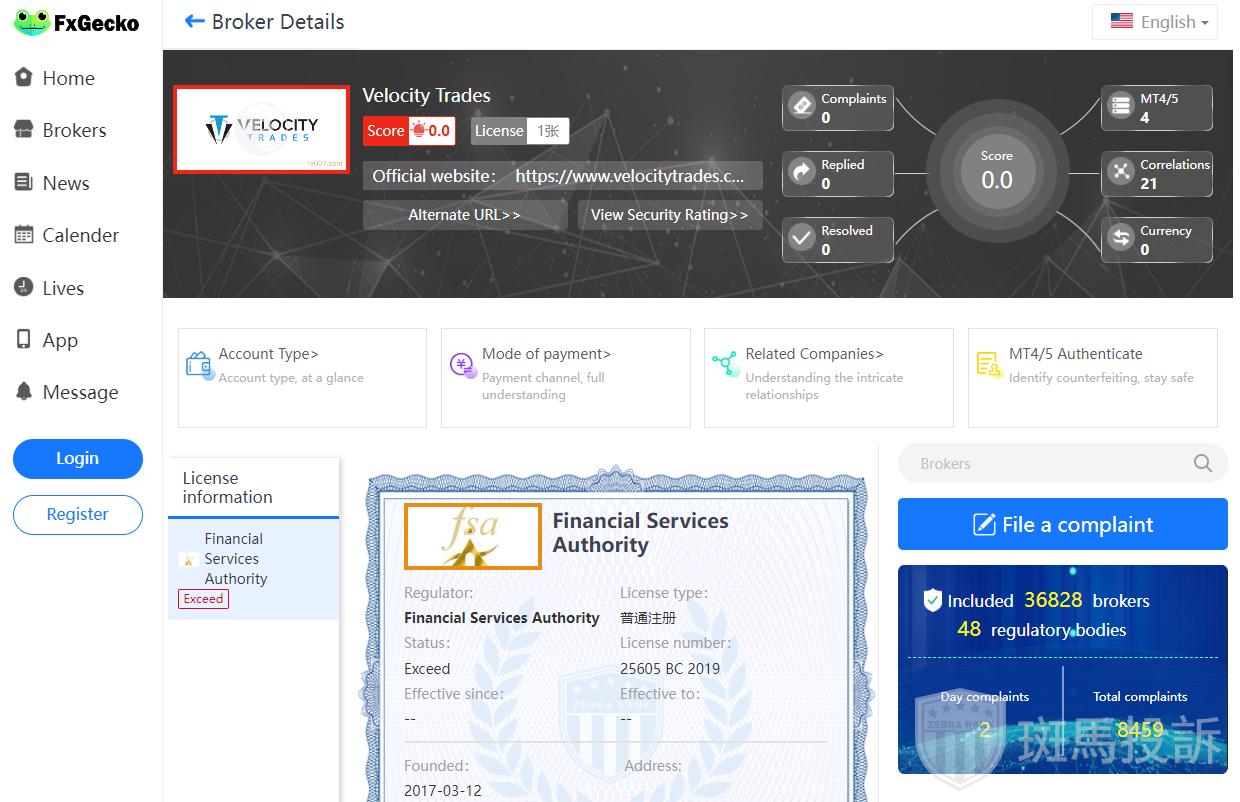 This broker is called Velocity Trades which was founded 7 years ago and is ranked 2327 in the world . Currently, no valid licensing information has been found for Velocity Trades, which is a high risk sign, beware!