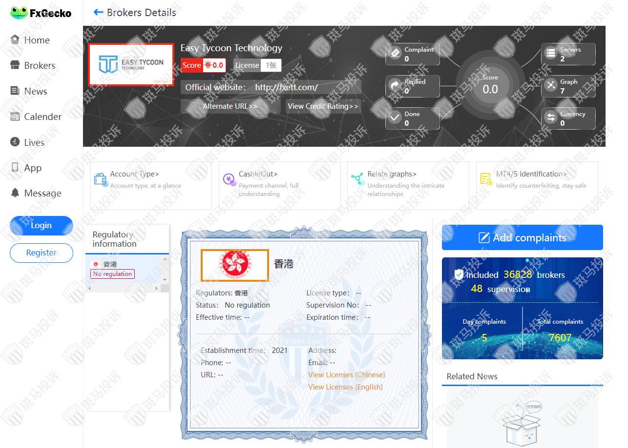 Easy Tycoon Technology has not received the complaint information in FTI yet.