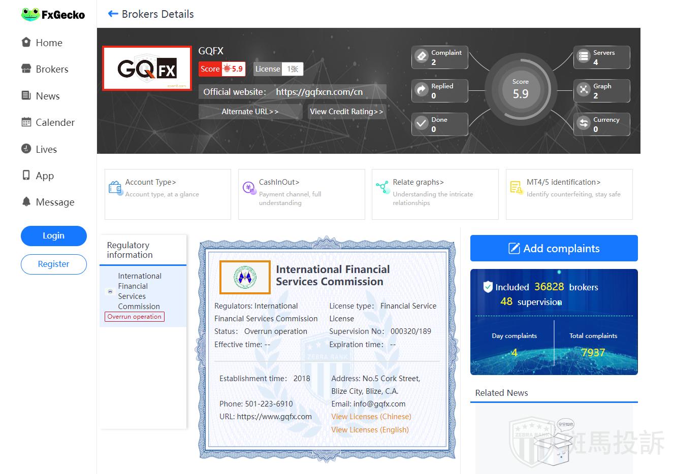 FTI has currently received 2 user complaints about GQFX. Beware!