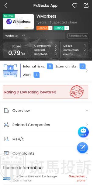 FTI risk warning shows that WMarkets has 3 risks. Investors need to pay attention to the relevant risk alerts for this broker.
