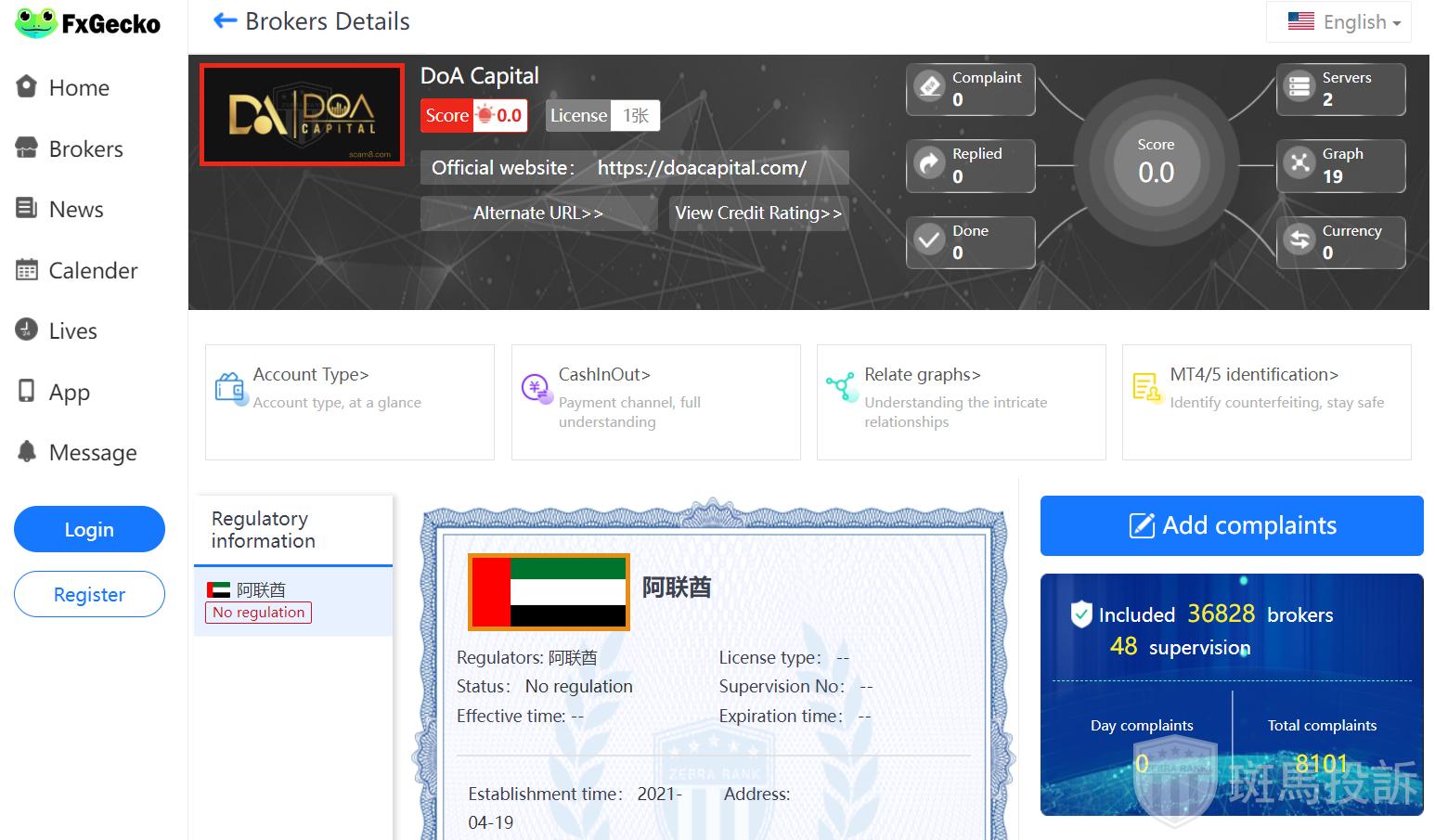 This broker is called DoA Capital which was founded less than 2 year ago and is ranked 2997 in the world. At present, there are 0 foreign exchange licenses (This is a high risk signal, beware!), and the risk scan shows 14 risks. Investors need to pay attention to relevant risks.