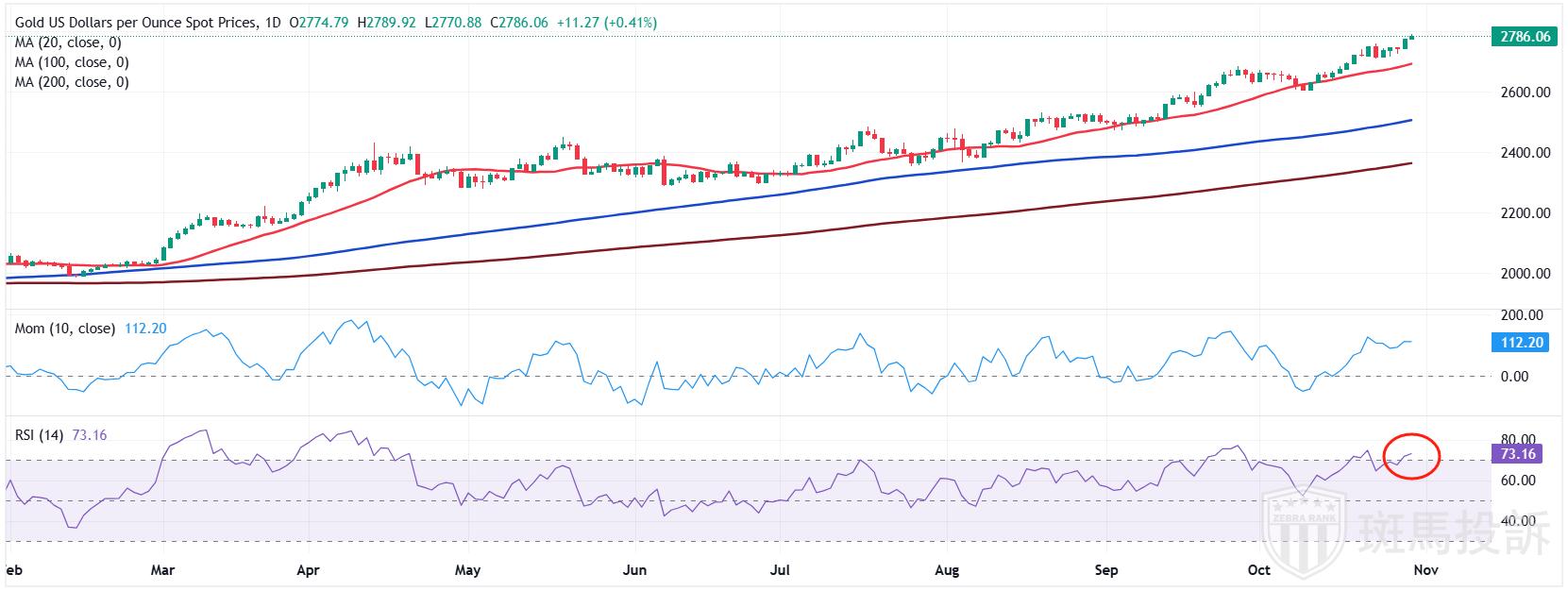 On Thursday (October 31), spot gold prices briefly hit the $2790 mark, setting a new historical high. Gold's strong performance is driven by multiple factors, including uncertainty surrounding the U.S. presidential election and rising geopolitical risks. As demand for safe-haven assets increases, gold's appeal as a safe haven becomes clearer.