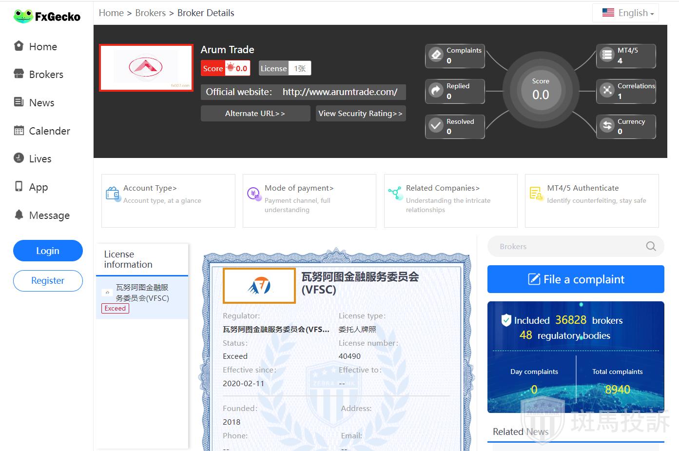 The name of this broker is Arum Trade, founded 6 years ago and ranked 2434 in the world.