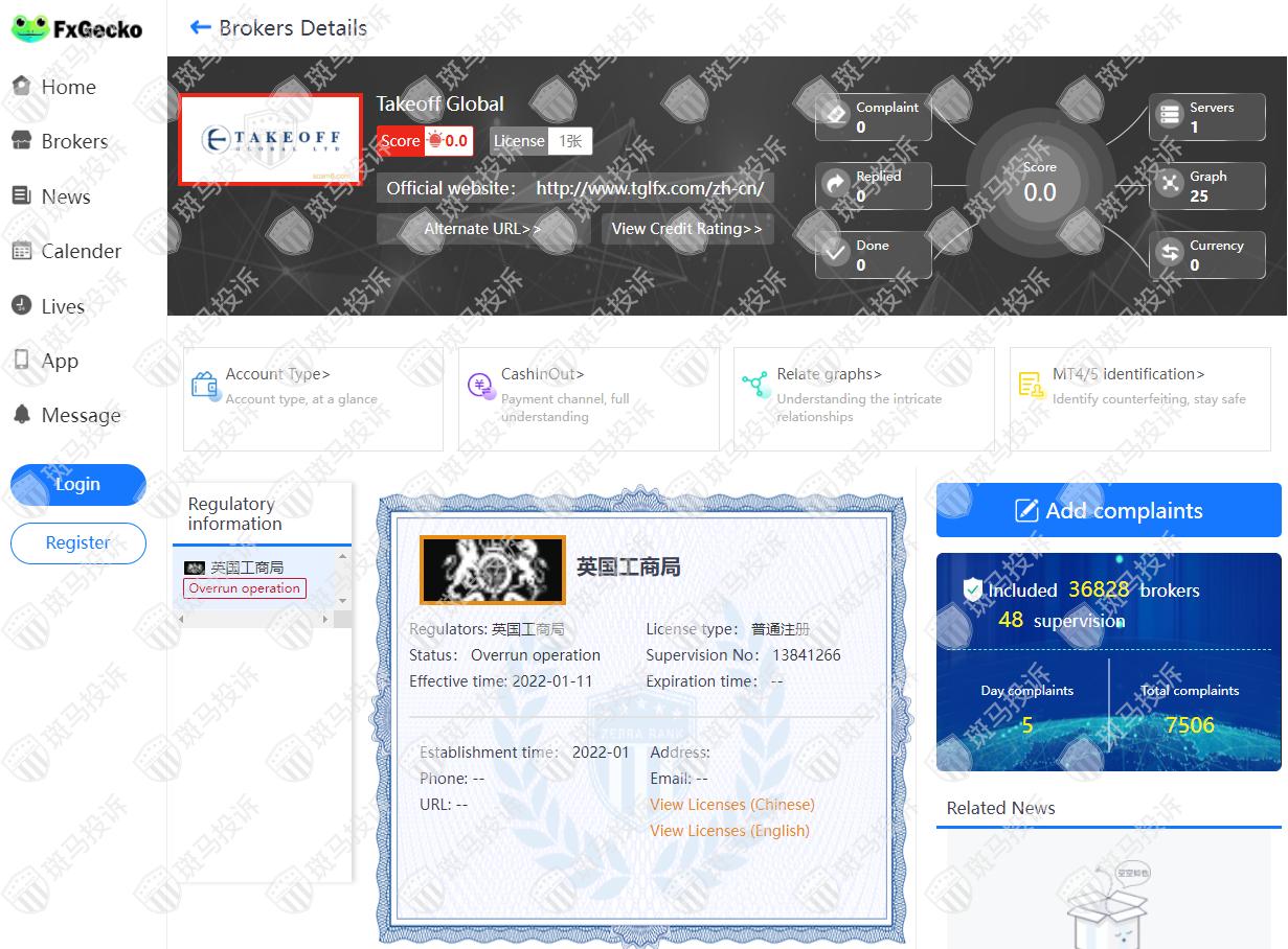 This broker is called Takeoff Global, which has been established for one year and ranks 2357 in the world. At present, there are 1 foreign exchange licenses, and the risk scan shows 2 risks. Investors need to pay attention to relevant risks.