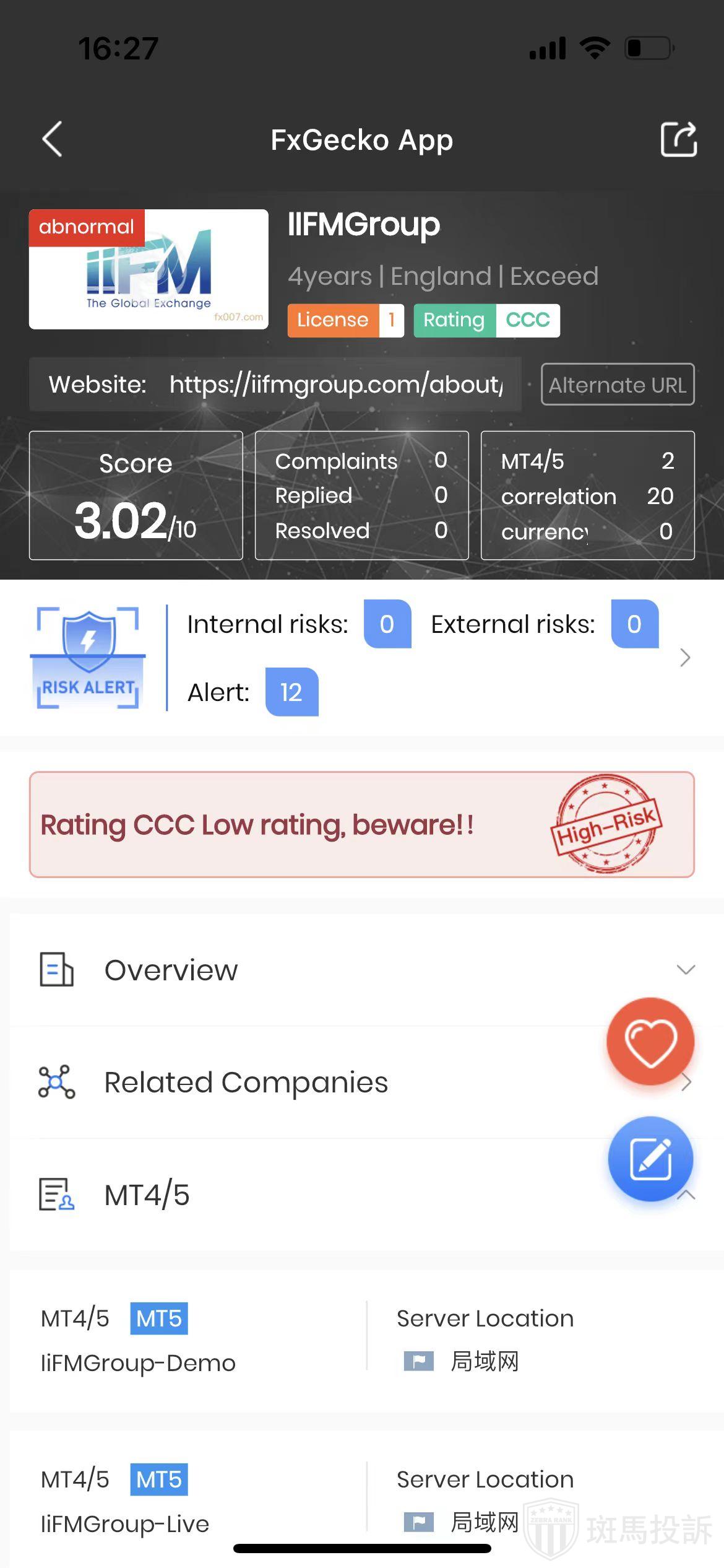 FTI risk warning shows that IIFMGroup has 12 risks. Investors need to pay attention to the relevant risk alerts for this broker.