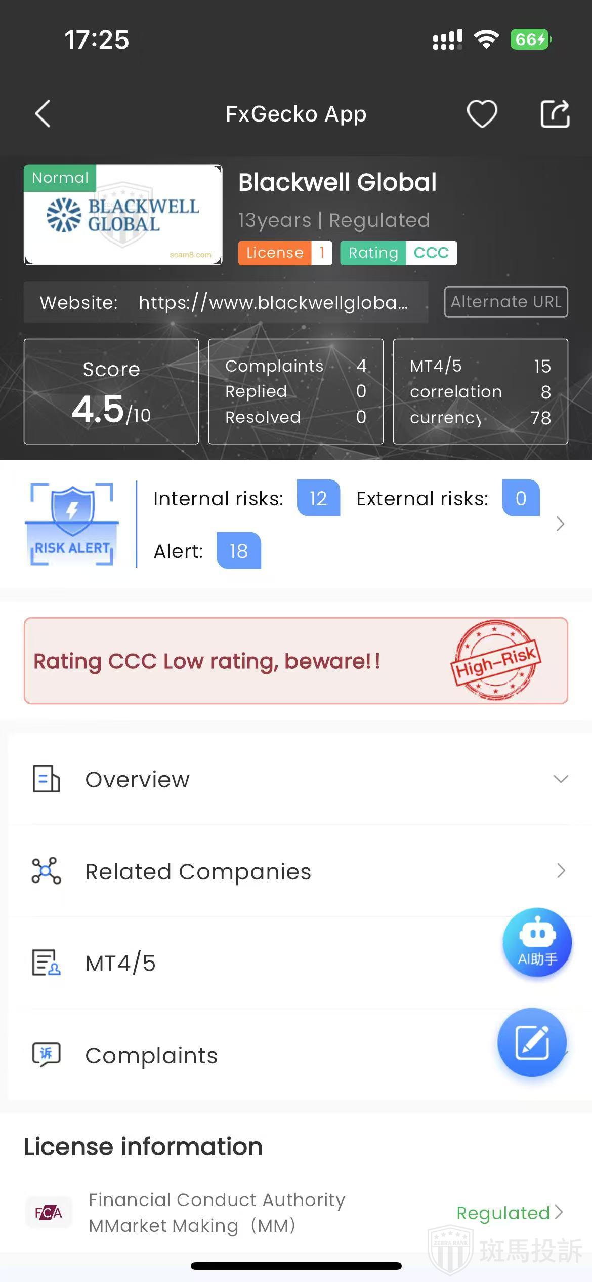 - According to public information, Blackwell Global claims to hold financial regulatory licenses from multiple regions, including the UK's FCA, Cyprus's CySEC, and Hong Kong's SFC.