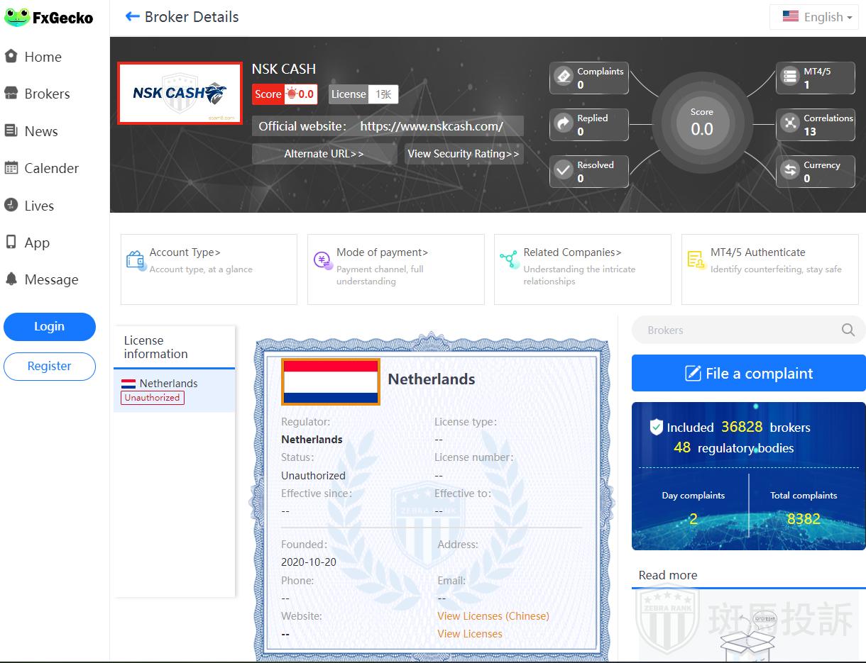 This broker is called NSK CASH,which has been established for one year and ranks 3814 in the world.At present,there are 0 foreign exchange licenses,and the risk scan shows 53 risks.Investors need to pay attention to relevant risks.