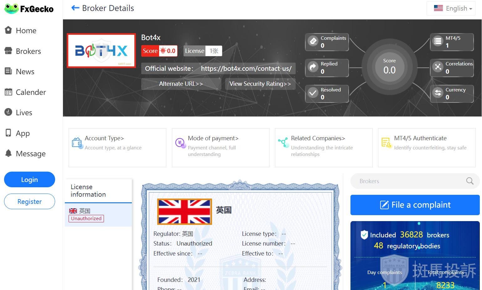 The master white label relationship shows that Bot4x has 0 associated brokers. We need to pay attention to whether the associated brokers are running away. This is the business risk of the brokers and the past business history, which can be used as an important reference condition for selecting brokers. The broker relationship data comes from the data of MetaQuotes.