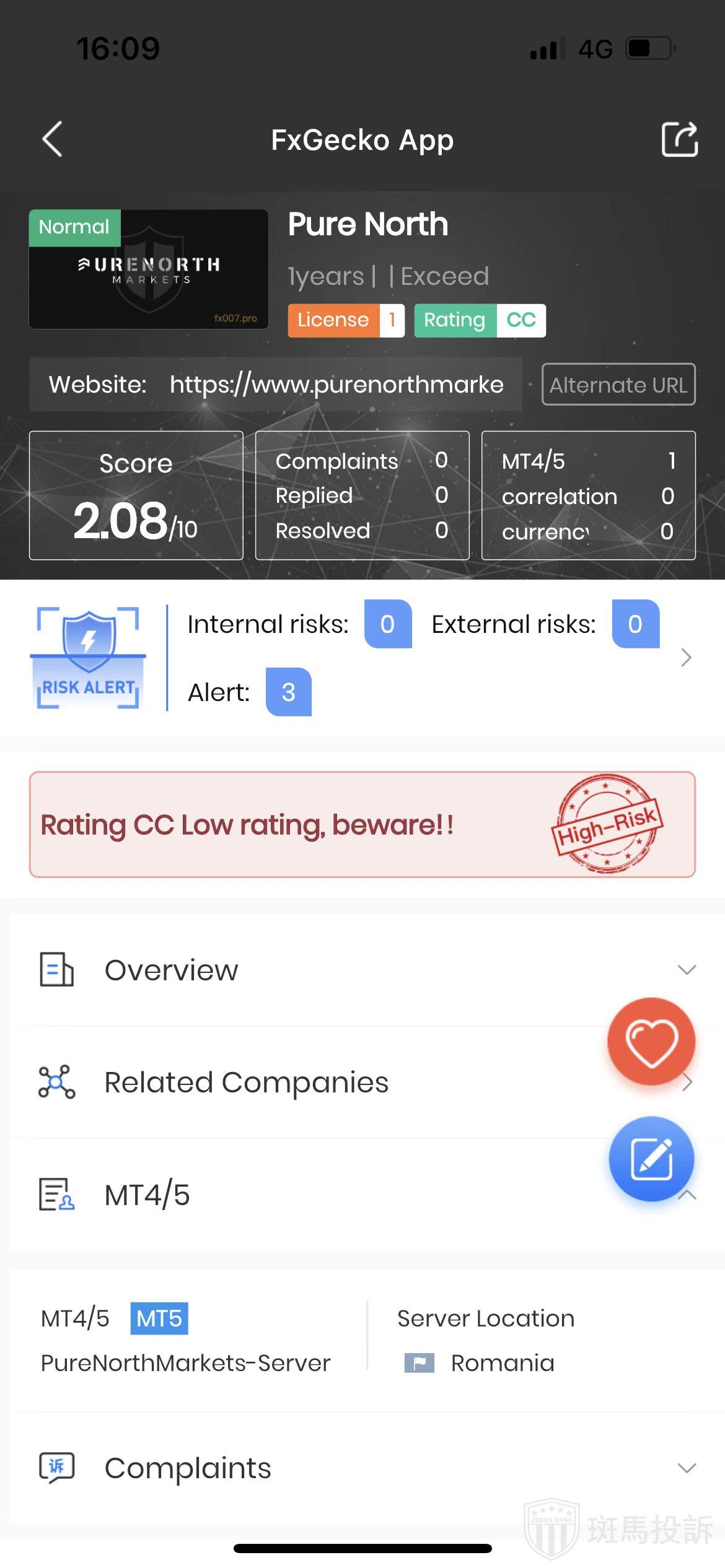 FTI risk warning shows that Pure North has 3 risks. Investors need to pay attention to the relevant risk alerts for this broker.