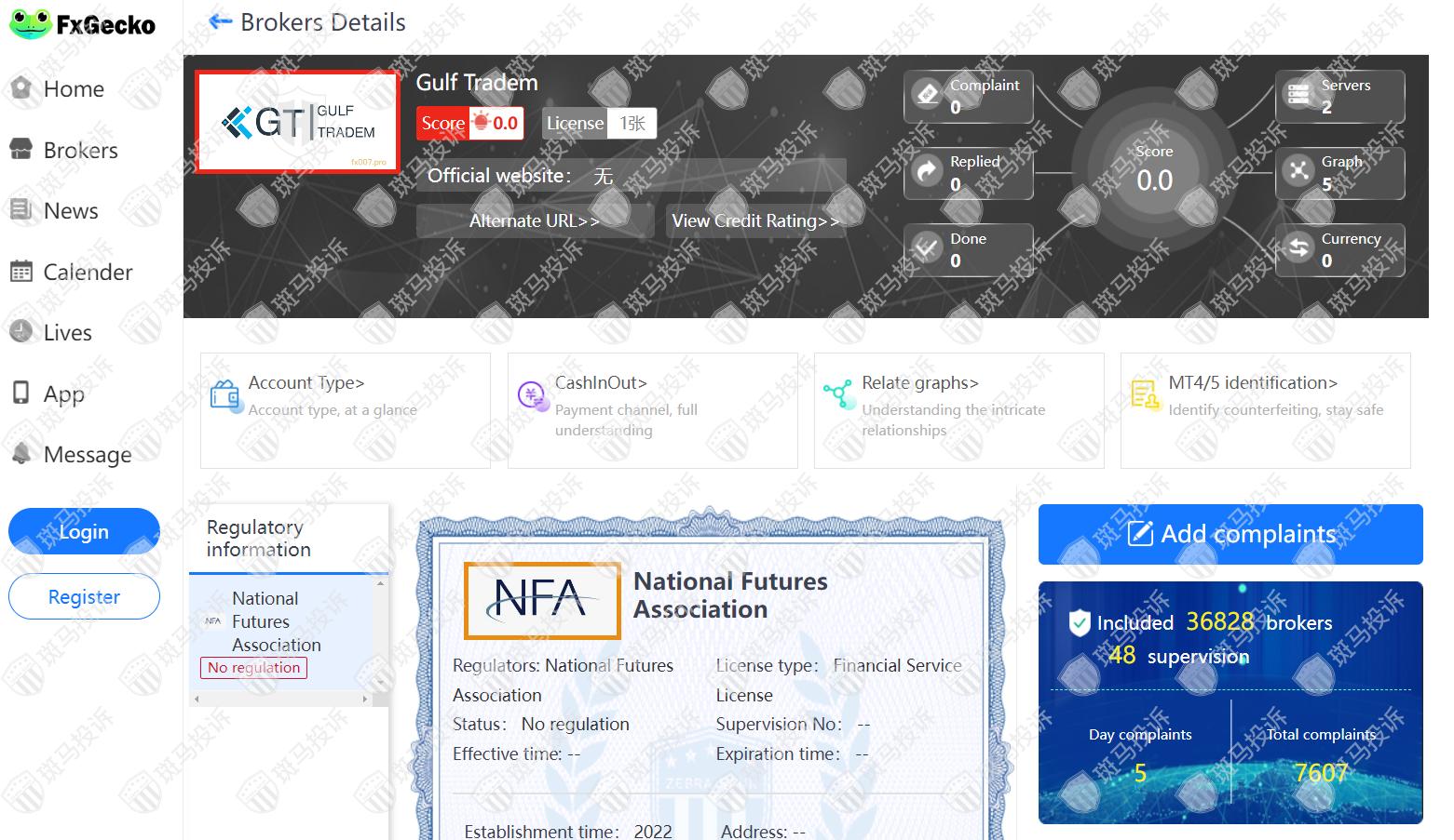 This broker is called Gulf Tradem which was founded less than 1 year ago and is ranked 4559 in the world. At present, there are 0 foreign exchange licenses, and the risk scan shows 2 risks. Investors need to pay attention to relevant risks.