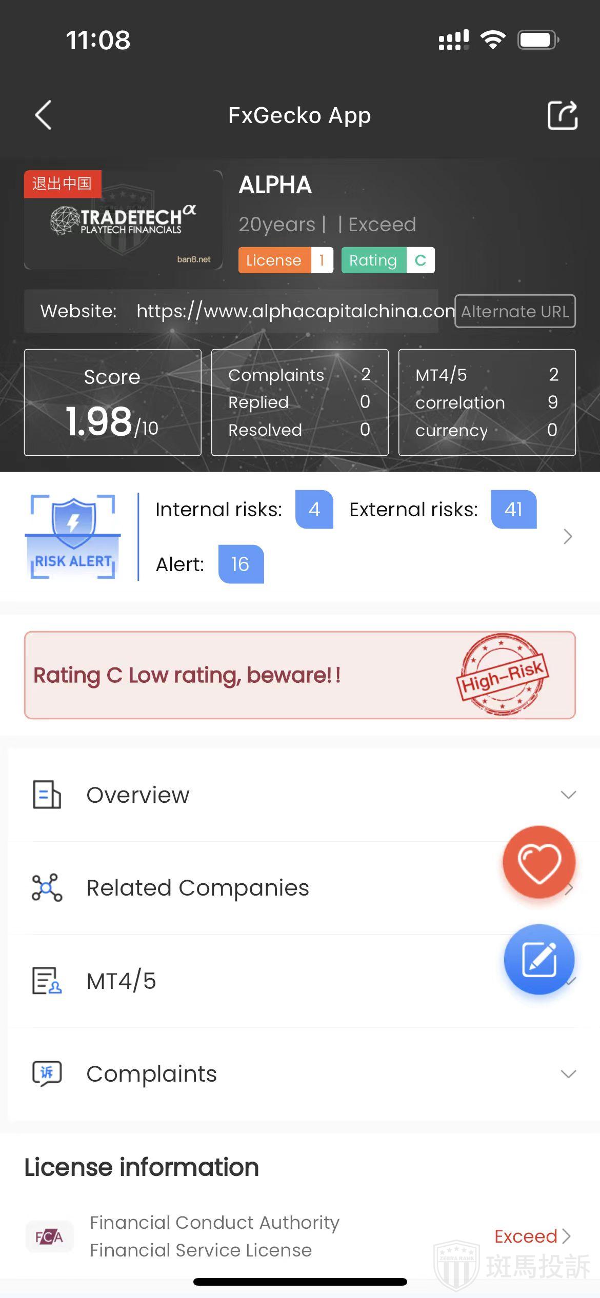 FTI's Comprehensive Review: ALPHA has officially exited the Chinese market. Complaints primarily revolve around issues with fund withdrawals, which have led to user dissatisfaction. It's noteworthy that there is a significant amount of negative feedback, with overall comments leaning towards average. While the platform offers a diverse range of trading products, its complaint resolution process is slow.