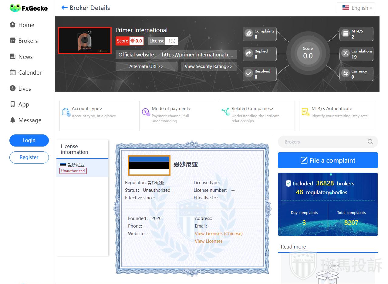 This broker is called Primer International, which has been established for one year and ranks 3278 in the world. At present, there are 1 foreign exchange licenses, and the risk scan shows 16 risks. Investors need to pay attention to relevant risks.
