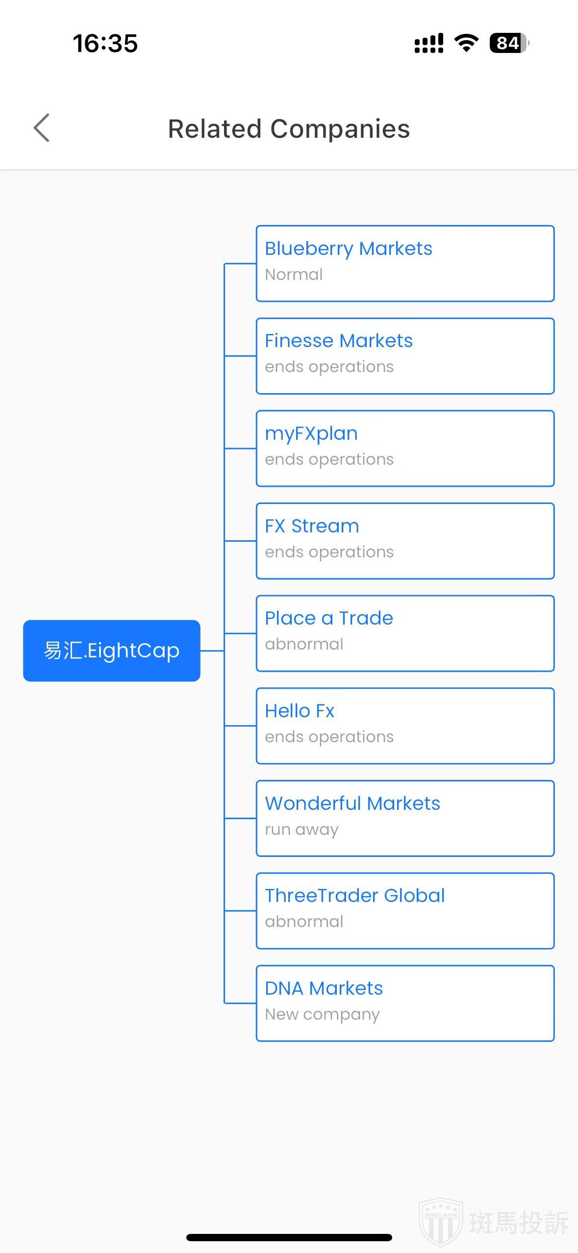 The master white label relationship shows that EightCap has 9 associated brokers. You need to pay attention to whether the associated brokers are running away. This is the business risk of the brokers and the past business history, which can be used as an important reference condition for selecting brokers. The broker relationship data comes from the data of MetaQuotes.