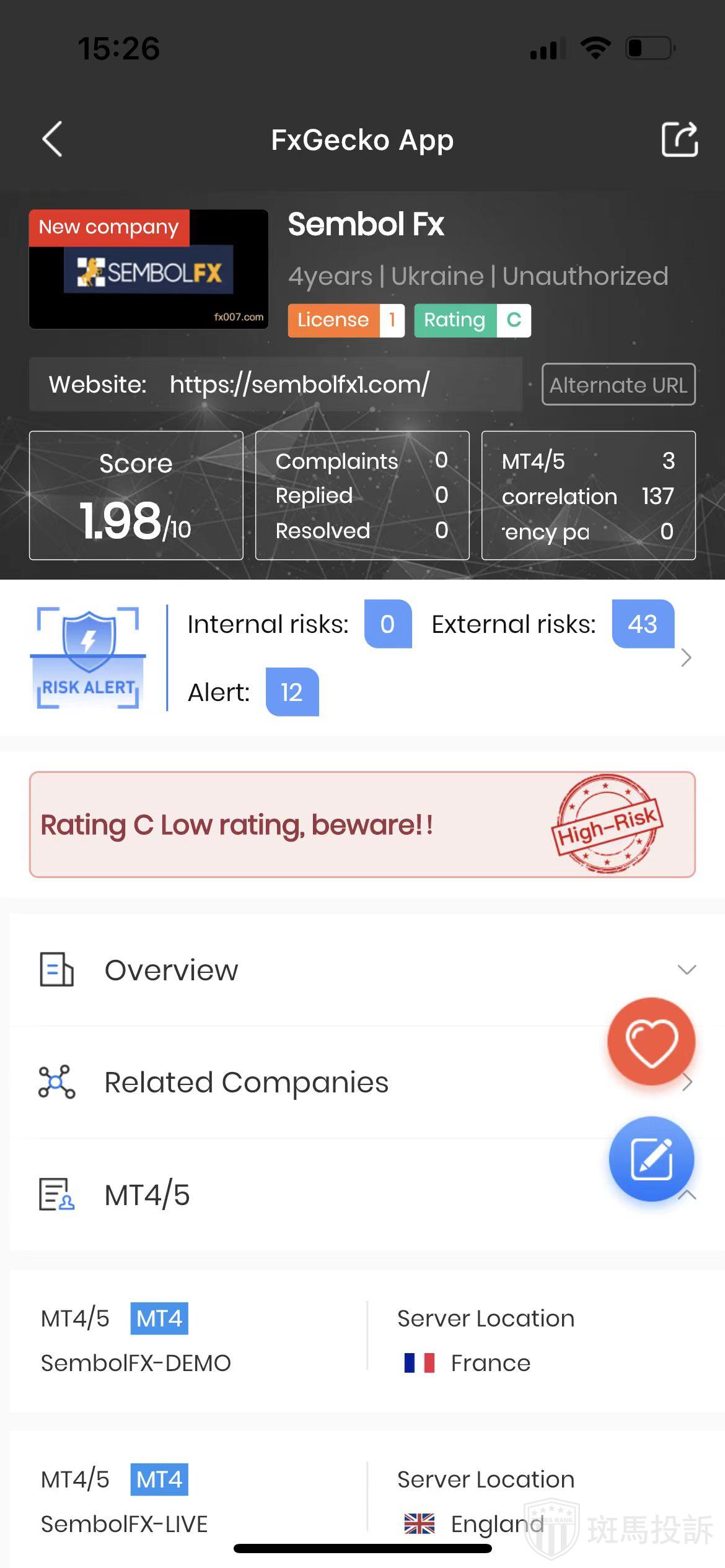 FTI risk warning shows that Sembol Fx has 55 risks. Investors need to pay attention to the relevant risk alerts for this broker.