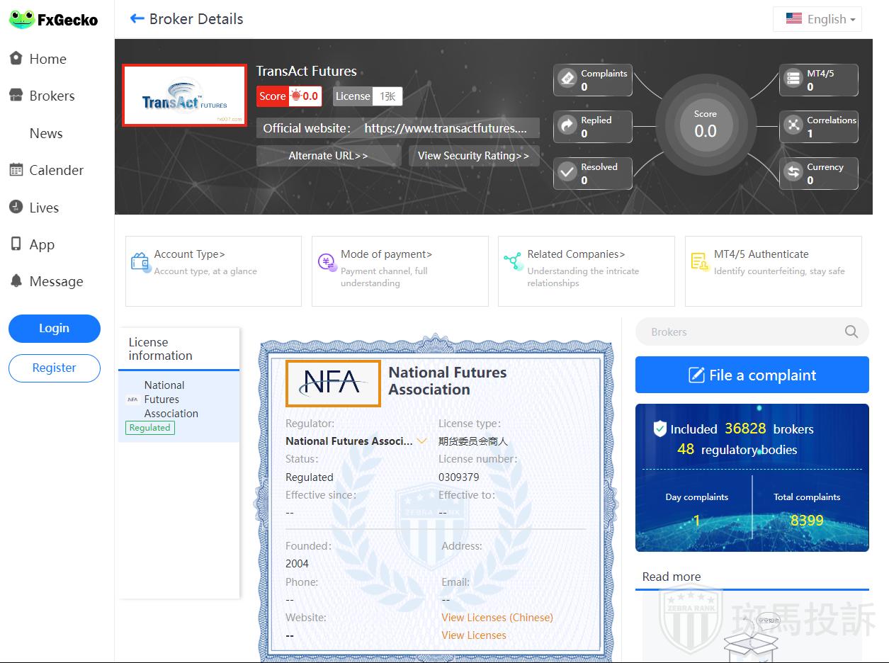 This broker is called TransAct Futures, which has been established for one year and ranks 0 in the world. At present, there are 1 foreign exchange licenses, and the risk scan shows 13 risks. Investors need to pay attention to relevant risks.