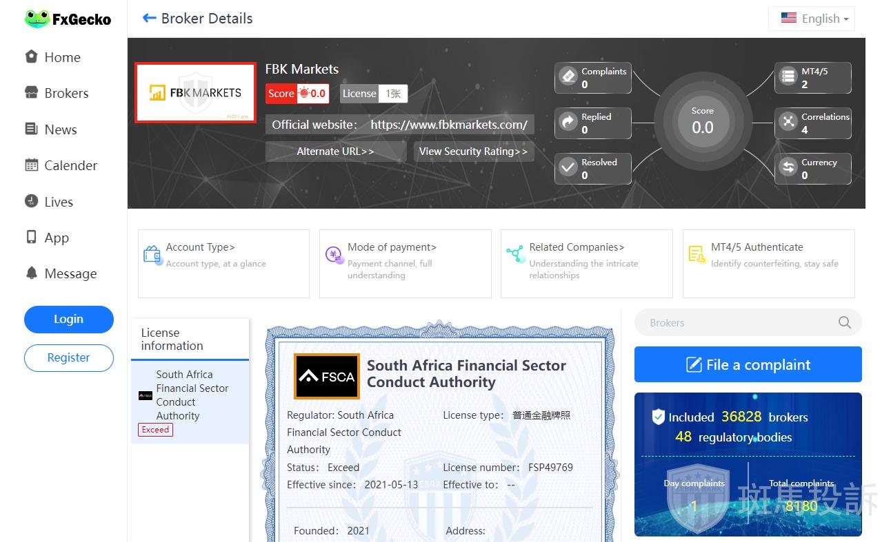 This broker is called FBK Markets, which has been established for one year and ranks 1767 in the world. At present, there are 1 exchange licenses, and the risk scan shows 13 risks. Investors need to pay attention to relevant risks.