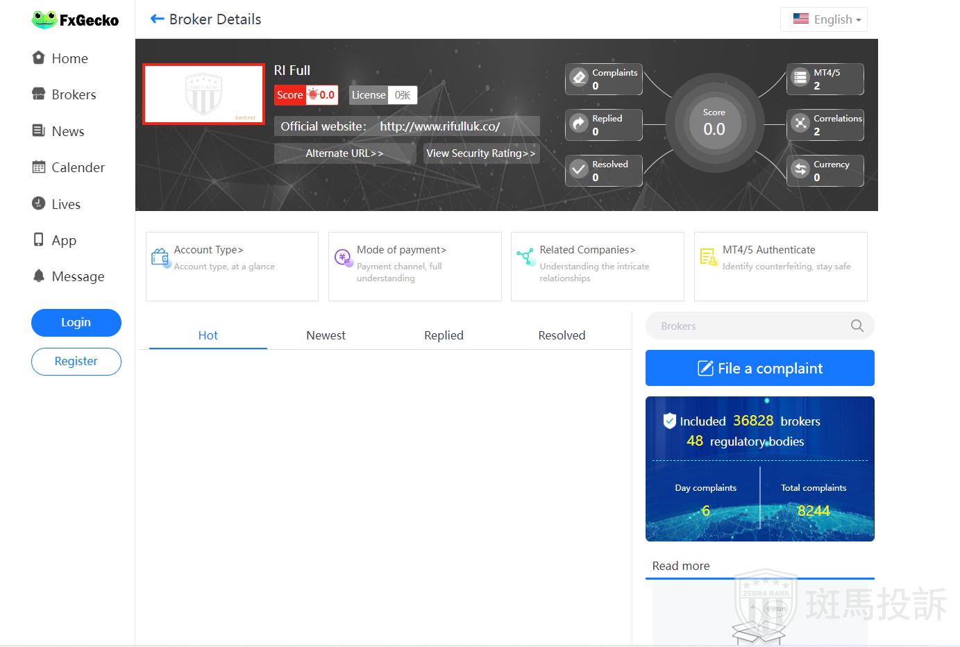 This broker is called RI Full, which has been established for one year and ranks 5713 in the world. At present, there is no foreign exchange license,and the risk scan shows 13 risks.Investors need to pay attention to relevant risks.