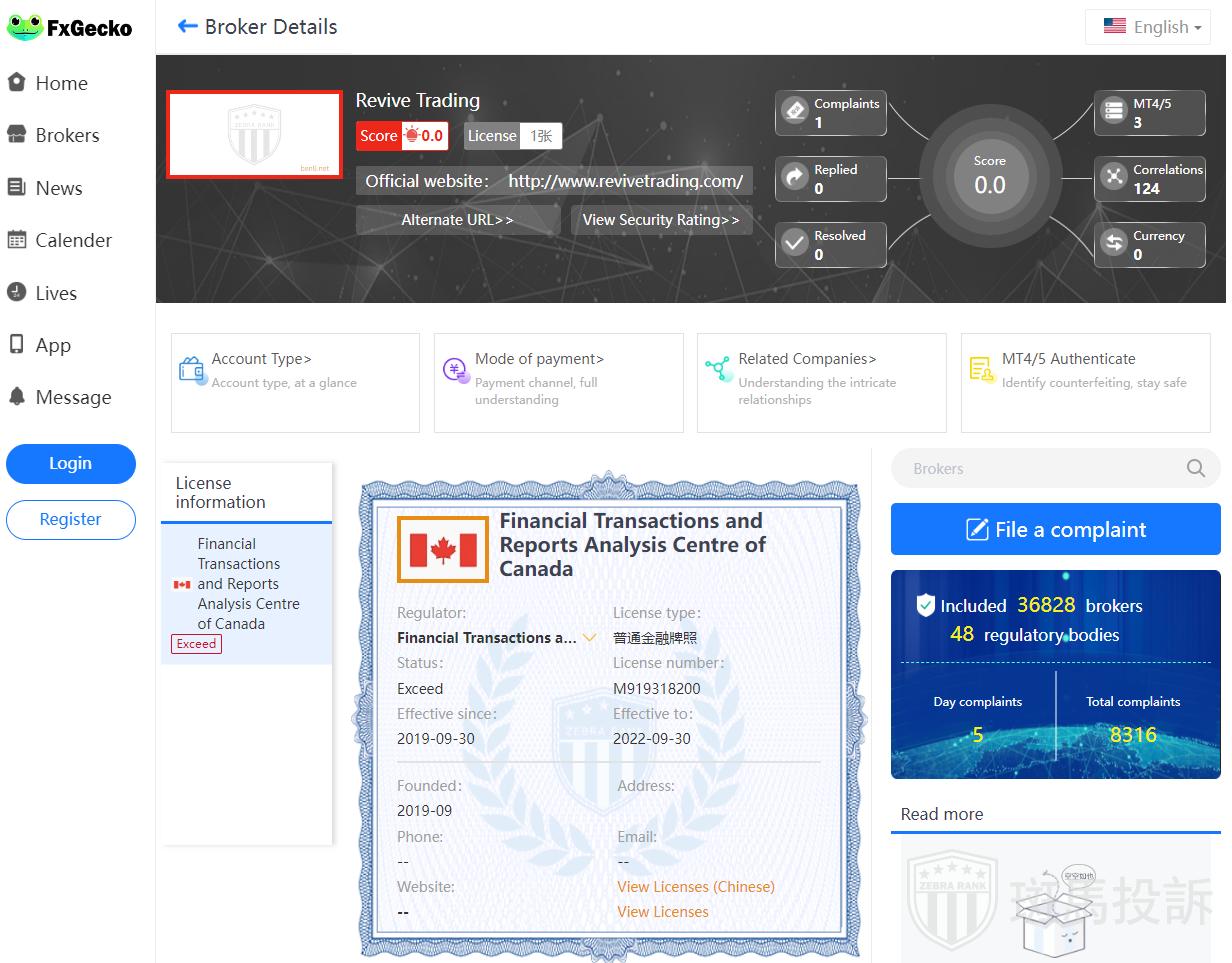 This broker is called Revive Trading, which has been established for one year and ranks 3114 in the world. At present, there are 1 foreign exchange licenses, and the risk scan shows 42 risks. Investors need to pay attention to relevant risks.