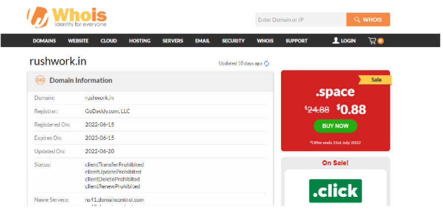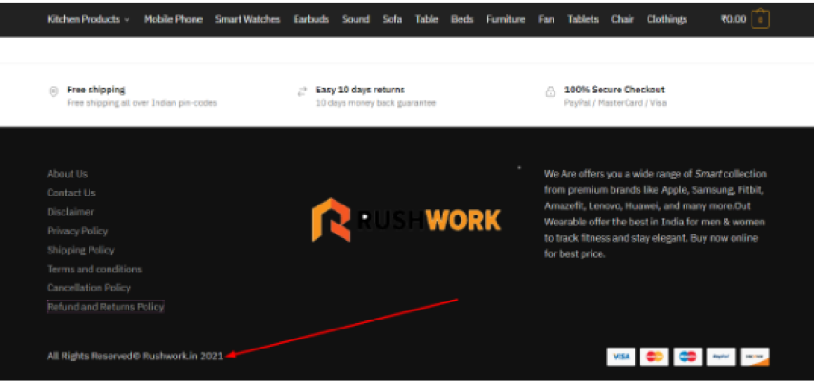 According to FTI, Rushwork.in was started in June 2022 making the site barely two months old. Interestingly, on the website, the site claims its copyright year as 2021. Why would a legit site provide false information about the age of the website?