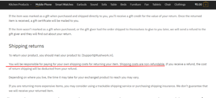 Any legit website will make it easy for people to return defective, damaged, or wrong products. What would you do with the wrong-sized clothes? But with Rushwork.in, they seem to be making it harder for people to return the items. How so, you ask?