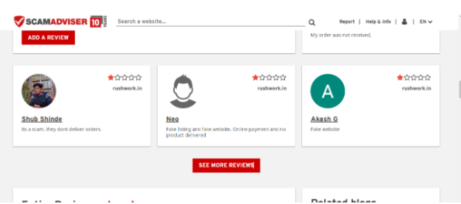 Overall, there are a lot of characteristics seen in Rushwork.in that overlap with those seen inother scams. The prices are too low to be true while the reviews are generally negative. Rushwork.in is a relatively new website which is not always a good sign as new websites have limited information.