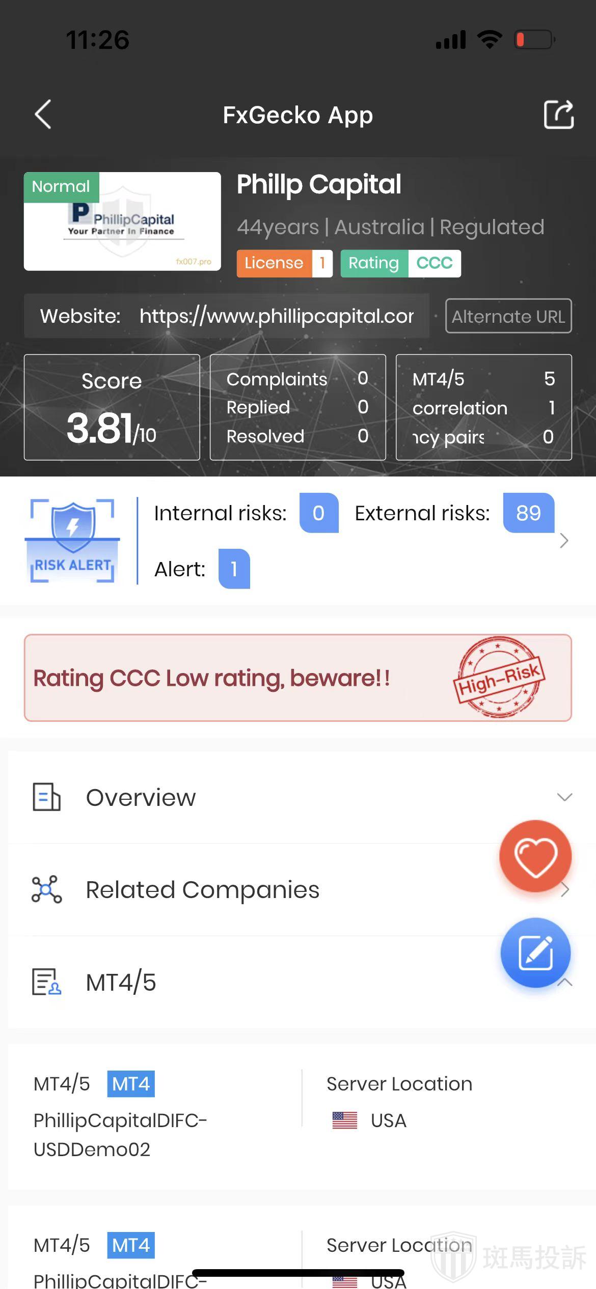 FTI risk warning shows that 辉立资本Phillp Capital has 90 risks. Investors need to pay attention to the relevant risk alerts for this broker.