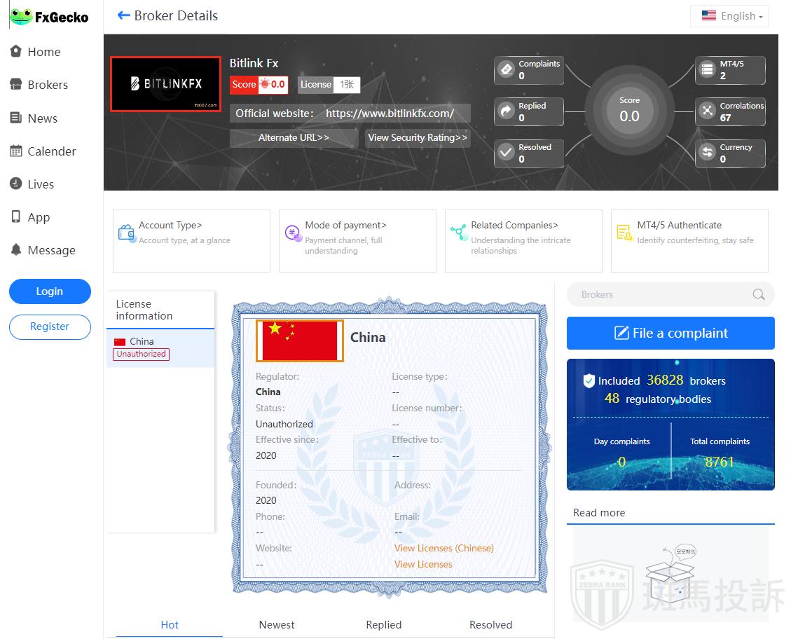 Currently, no valid regulatory information has been found for Bitlink Fx, which is a high risk sign, beware!