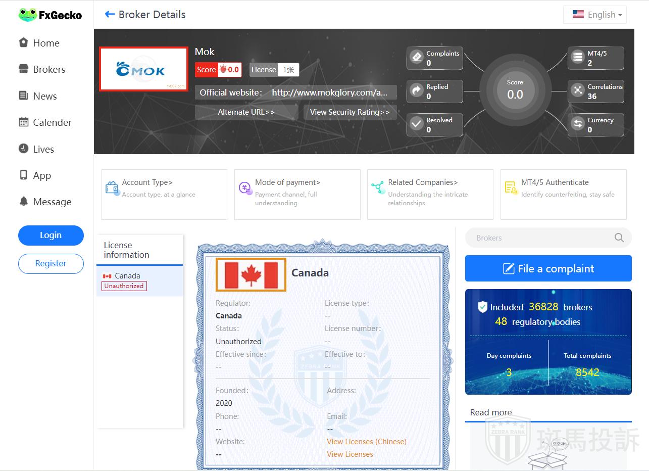 Currently, no valid regulatory information has been found for Mok, which is a high risk sign, beware!