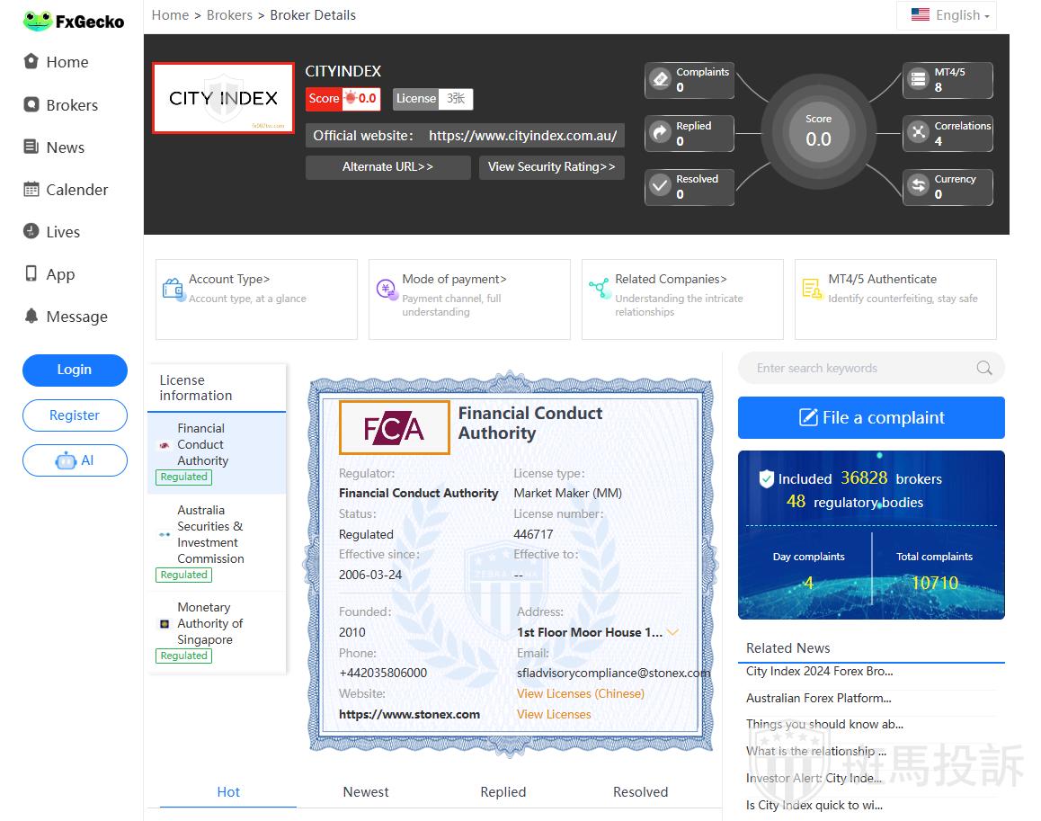 City Index, as part of StoneX Financial Ltd, operates under the supervision of the relevant financial regulators. For example, in the UK, City Index is regulated by the Financial Conduct Authority (FCA) and in Australia, its operations are regulated by the Australian Securities and Investments Commission (ASIC). This indicates that City Index's operations comply with stringent regulatory standards and provide investors with a degree of security.