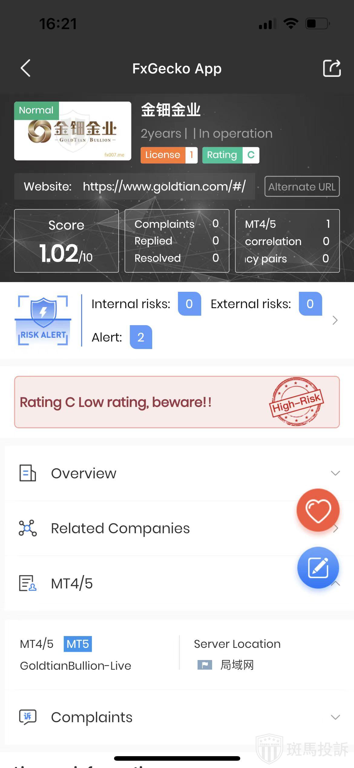 FTI risk warning shows that 金钿金业 has 2 risks. Investors need to pay attention to the relevant risk alerts for this broker.