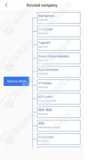 The main white label relationship shows that there are 25 associated brokers on the Maxtra Rich. We need to pay attention to whether the associated brokers are running away. This is the business risk of the brokers and the past business history, which can be used as an important reference condition for selecting brokers. The broker relationship data comes from the data of MetaQuotes.