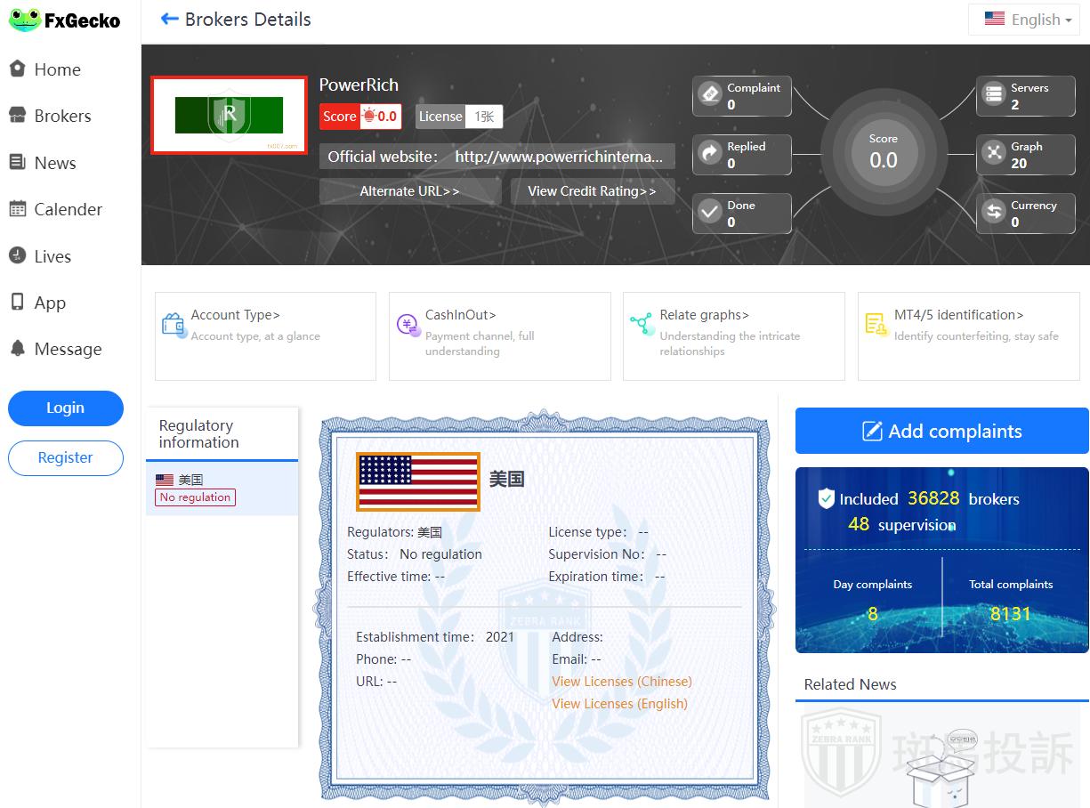 This broker is called PowerRich, which has been established for one year and ranks 3876 in the world. At present, there are 0 foreign exchange licenses, and the risk scan shows 14 risks. Investors need to pay attention to relevant risks.