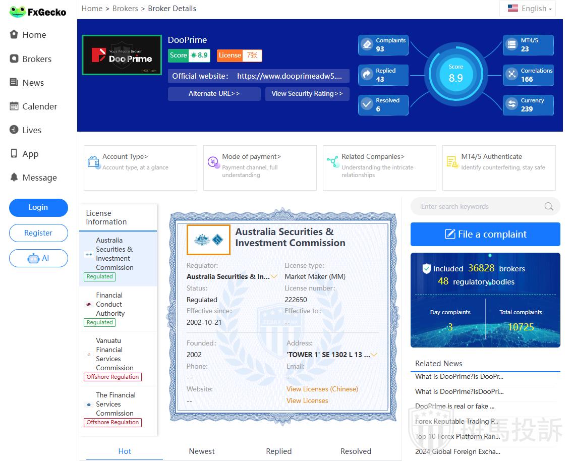 Regulation: Doo Prime is strictly regulated by financial institutions in many countries, including the Financial Conduct Authority (FCA) of the United Kingdom, ASIC of Australia, the Vanuatu Financial Services Commission (VFSC) and the Financial Services Commission (FSC) of Mauritius, and the FSA of Seychelles, etc. The platform is regulated by the Financial Services Commission (FSC) of Mauritius and the FSA of Seychelles. The approval of these regulatory bodies ensures the operational compliance of the platform and safeguards the safety of clients' funds to a certain extent.