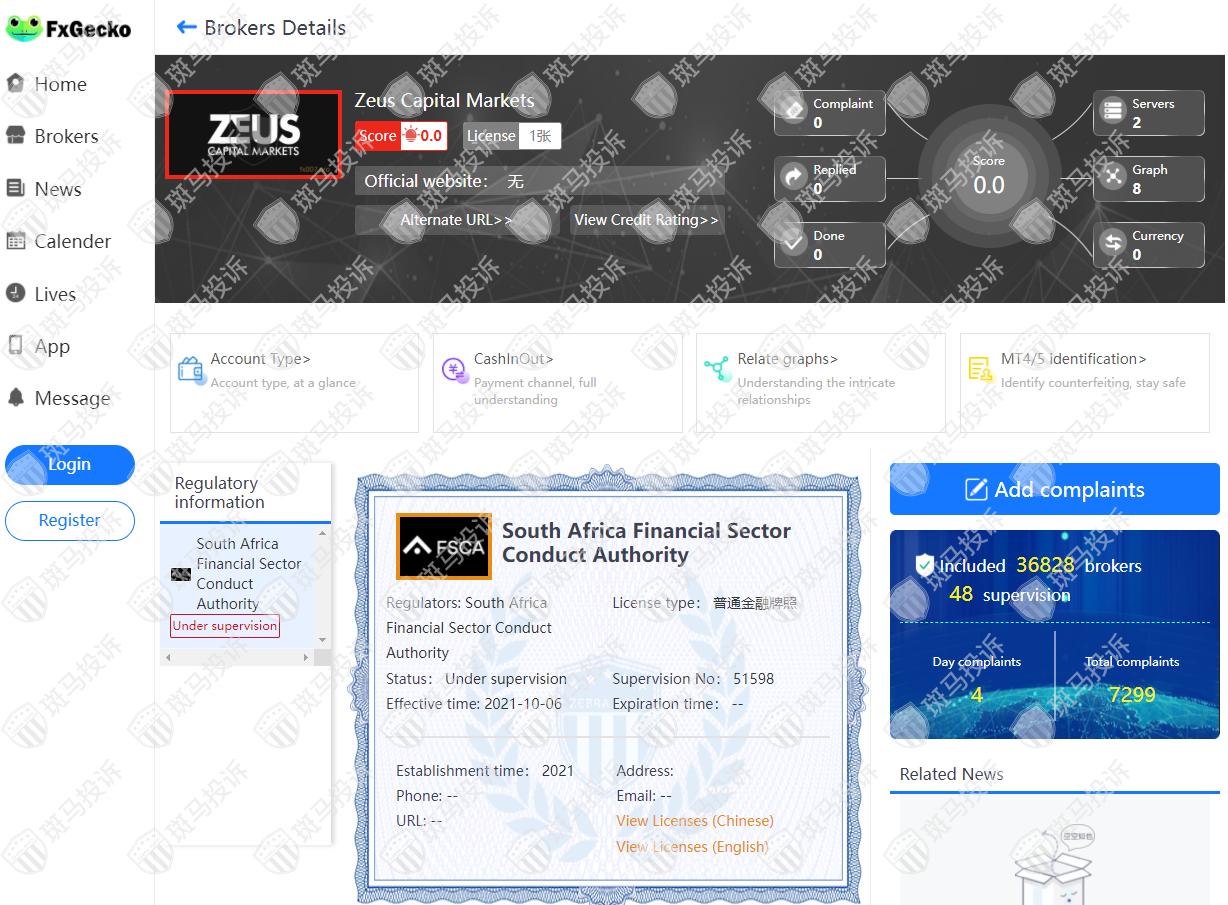 This broker is called Zeus Capital Markets, which has been established for one year and ranks 1572 in the world. At present, there are 1 foreign exchange licenses, and the risk scan shows 5 risks. Investors need to pay attention to relevant risks.