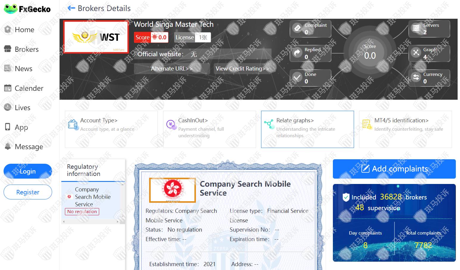 This broker is called World Singa Master Tech which was founded less than 1 year ago and is ranked 4290 in the world. At present, there are 0 foreign exchange licenses, and the risk scan shows 2 risks. Investors need to pay attention to relevant risks.