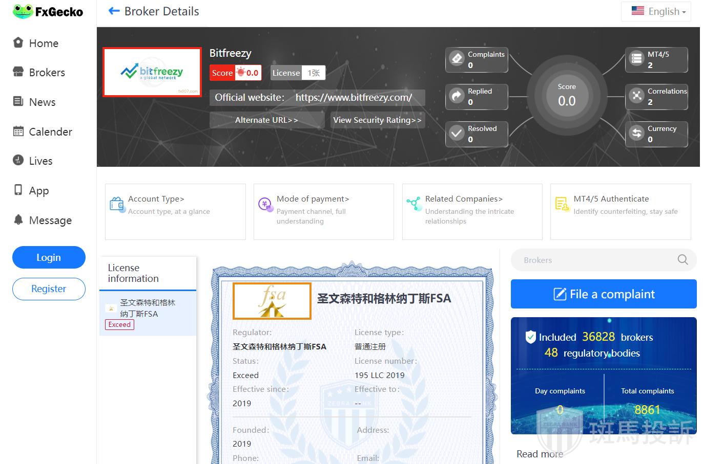 FTI risk warning shows that Bitfreezy has 2 risks. Investors need to pay attention to the relevant risk alerts for this broker.
