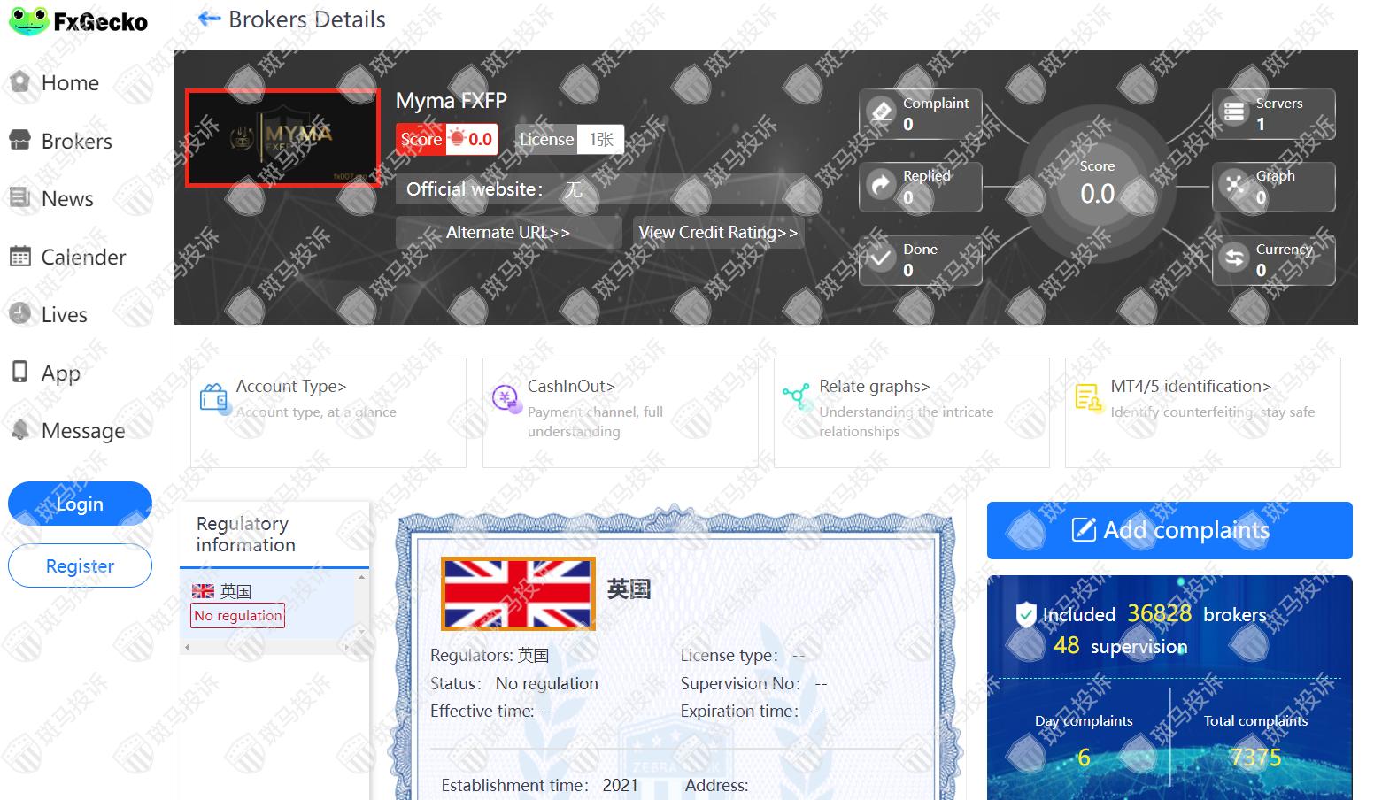 This broker is called Myma FXFP, which has been established for 1 year and ranks 3317 in the world. At present, there are 0 foreign exchange licenses, and the risk scan shows 1 risk. Investors need to pay attention to relevant risks.